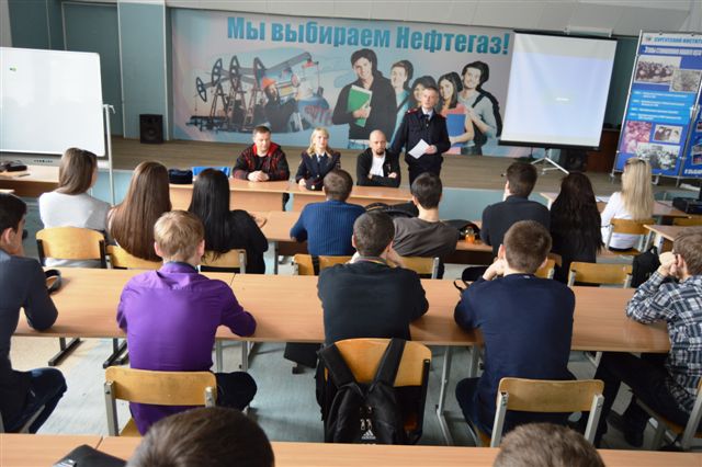 Главной темой встречи стало «Безопасное управление двухколёсным транспортным средством». В мероприятии приняли участие представители ГИБДД Сургута: врио начальника ЦАФАП ОГИБДД УМВД России по г. Сургуту, майор полиции Наталья Андреева, и заместитель командира ОБ ДПС ОГИБДД УМВД России по г. Сургуту, майор полиции Владимир Неустроев. Совместно с представителями мотоциклетного движения в Сургуте – председателем окружной общественной организации «Мотопродвижение» - Сергеем Богдановским и вице-президентом мотоклуба «Райдо», инструктором по вождению Автошколы «ДОСААФ» - Андреем Литвиненко, автоинспекторы провели профилактическую беседу со студентами Нефтяного техникума и сургутского Института нефти и газа. Цель подобных мероприятий – профилактика безопасного участия в дорожном движении юношей и девушек городских ВУЗов.