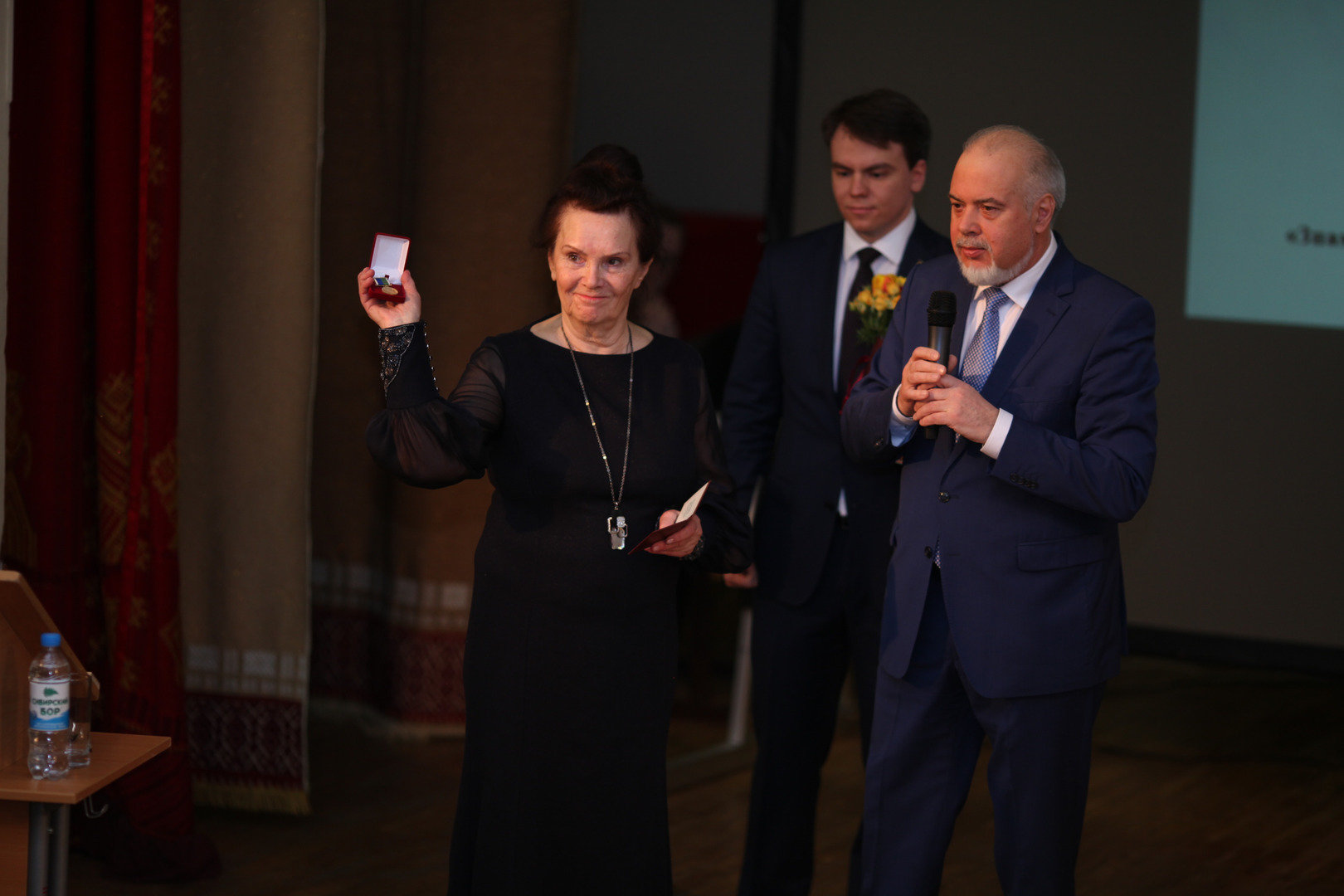 Вадим Шувалов также вручил окружную награду «За выдающийся вклад в социально-экономическое развитие автономного округа» Екатерине Лоншаковой, заместителю директора Сургутского колледжа русской культуры им. А.С. Знаменского, председателю правления региональной общественной организации Югры «Общество русской культуры» и комиссии по культуре, межэтническим, межконфессиональным отношениям и вопросам коренных малочисленных народов Севера Общественной палаты Югры. Глава города выразил благодарность Екатерине Владимировне от Губернатора округа, себя лично и всех сургутян: «Я рад, что в Сургуте живет такой человек, тоже создавший целую плеяду учеников, которые прославляют и Сургут, и Югру на федеральном уровне и за рубежом. Я выражаю вам благодарность от всех сургутян за ваш труд, за то, что Вы отдаете свои душу и сердце».