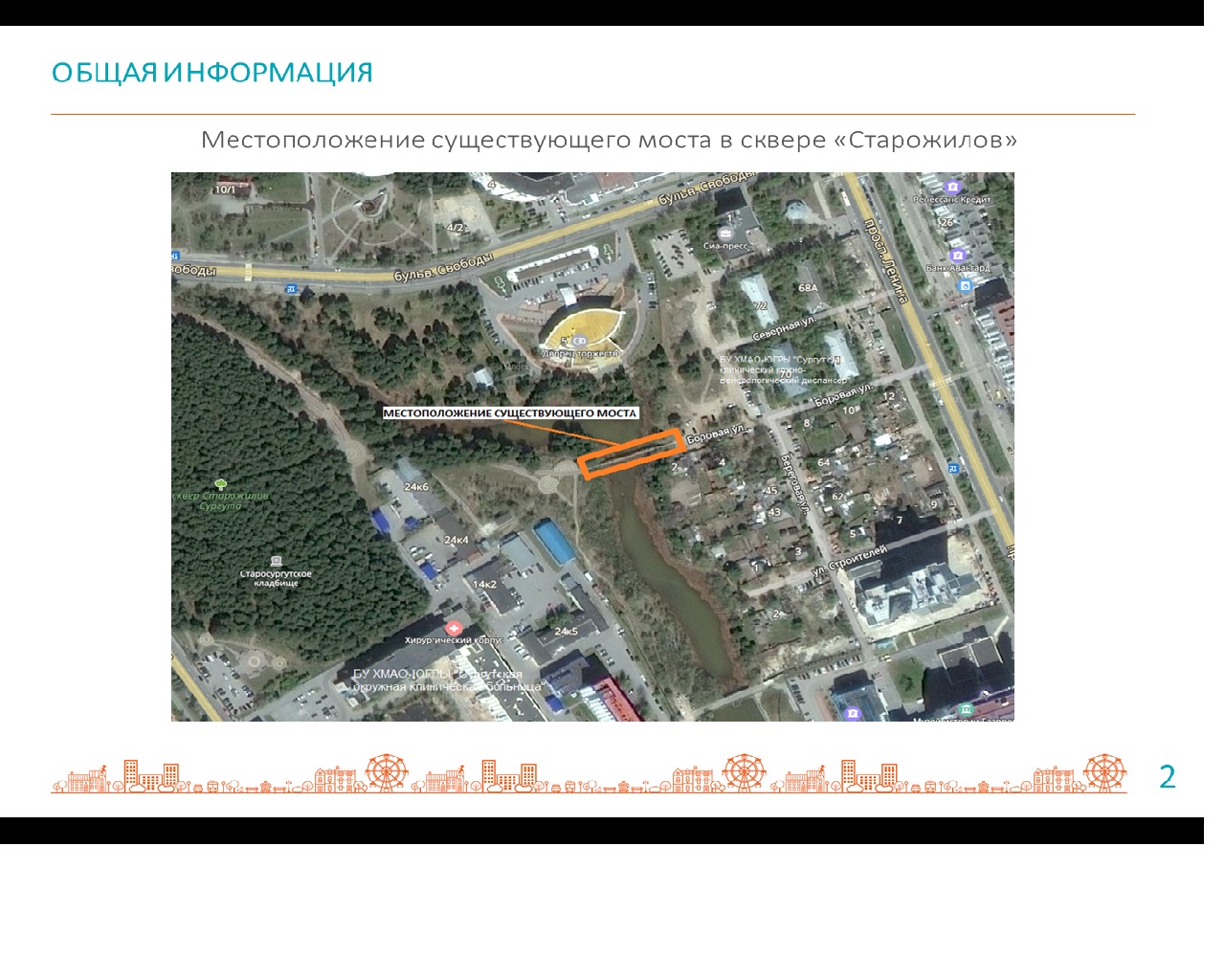 Старый деревянный мост в сквере старожилов демонтировали. На его месте сейчас идут строительные работы. Длина нового моста составит 55 метров. Из бюджета округа и города на его возведение выделено более 27 миллионов рублей. Завершить работы планируют до конца октября. Новый мост обеспечит дополнительный доступ в сквер, во Дворец торжеств, окружную клиническую больницу и расположенный рядом диспансер. Замена конструкции – лишь первый этап масштабных работ по благоустройству, которые пройдут вокруг и станут частью общей реконструкции центра города.