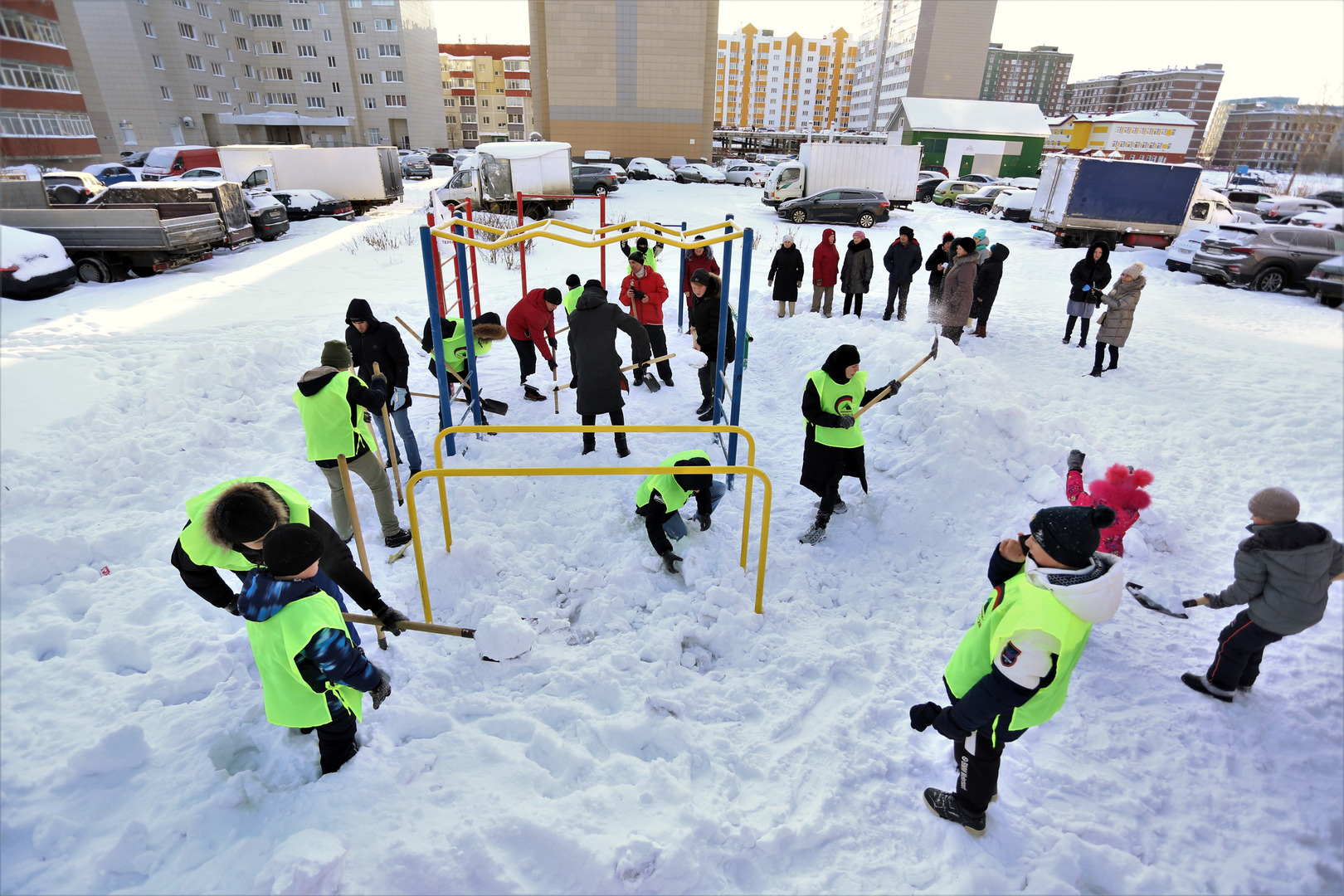 Мероприятие прошло во дворе дома по улице Генерала Иванова, 7/1. Силами участников от снега очищена спортивная площадка.