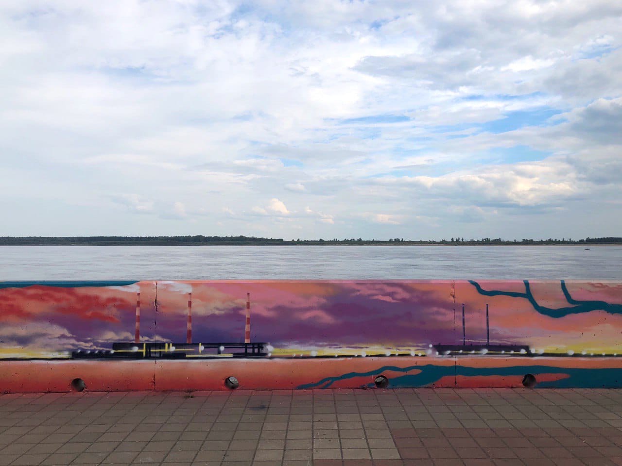В Сургуте появился новый арт-объект «Набережная жизни». Сургутские художники преобразили набережную Оби у речного порта. Они нанесли на бетонные ограждения рисунки, отражающие 30 ключевых дат из истории нашего города. Рисунок занимает территорию общей площадью 500 квадратных метров с начала Набережной от улицы Затонской, 2 до памятного обелиска сургутянам, ушедшим на фронт в 1941-1945.