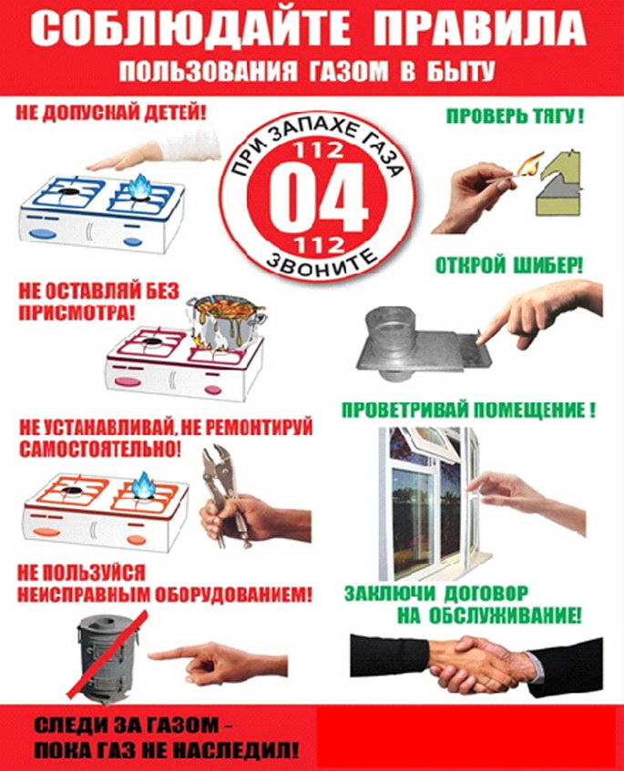 Необходимо быть внимательными к запахам на кухне, в подвале, лестничной клетке, уметь отличать запах газа, а также знать действия при появлении запаха газа (проветривать помещение, погасить открытый огонь, не курить, не пользоваться электрическими приборами и выключателями и др.) Важно содержать в чистоте кухонное помещение, не допускать скопление пыли и мусора, еженедельно выполнять влажную уборку газового оборудования.