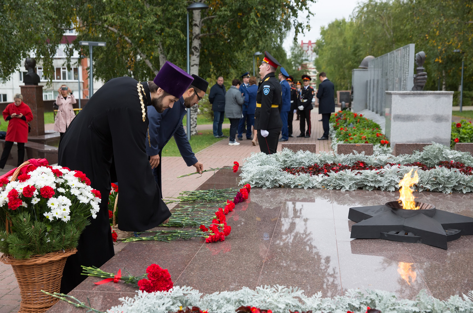 Позже, у Вечного огня, состоялось возложение цветов в рамках Дня солидарности в борьбе с терроризмом.