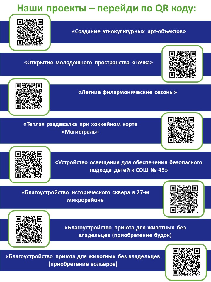 Сургут представил 8 инициативных проектов. В их числе: «Создание этнокультурных арт-объектов», «Открытие молодёжного пространства «Точка», «Летние филармонические сезоны», «Теплая раздевалка при хоккейном корте «Магистраль», «Устройство освещения для обеспечения безопасного подхода детей, СОШ № 4 (второй этап)», «Благоустройство исторического сквера в 27-м микрорайоне», «Благоустройство приюта для животных без владельцев (приобретение вольеров)», «Благоустройство приюта для животных без владельцев (приобретение будок)».