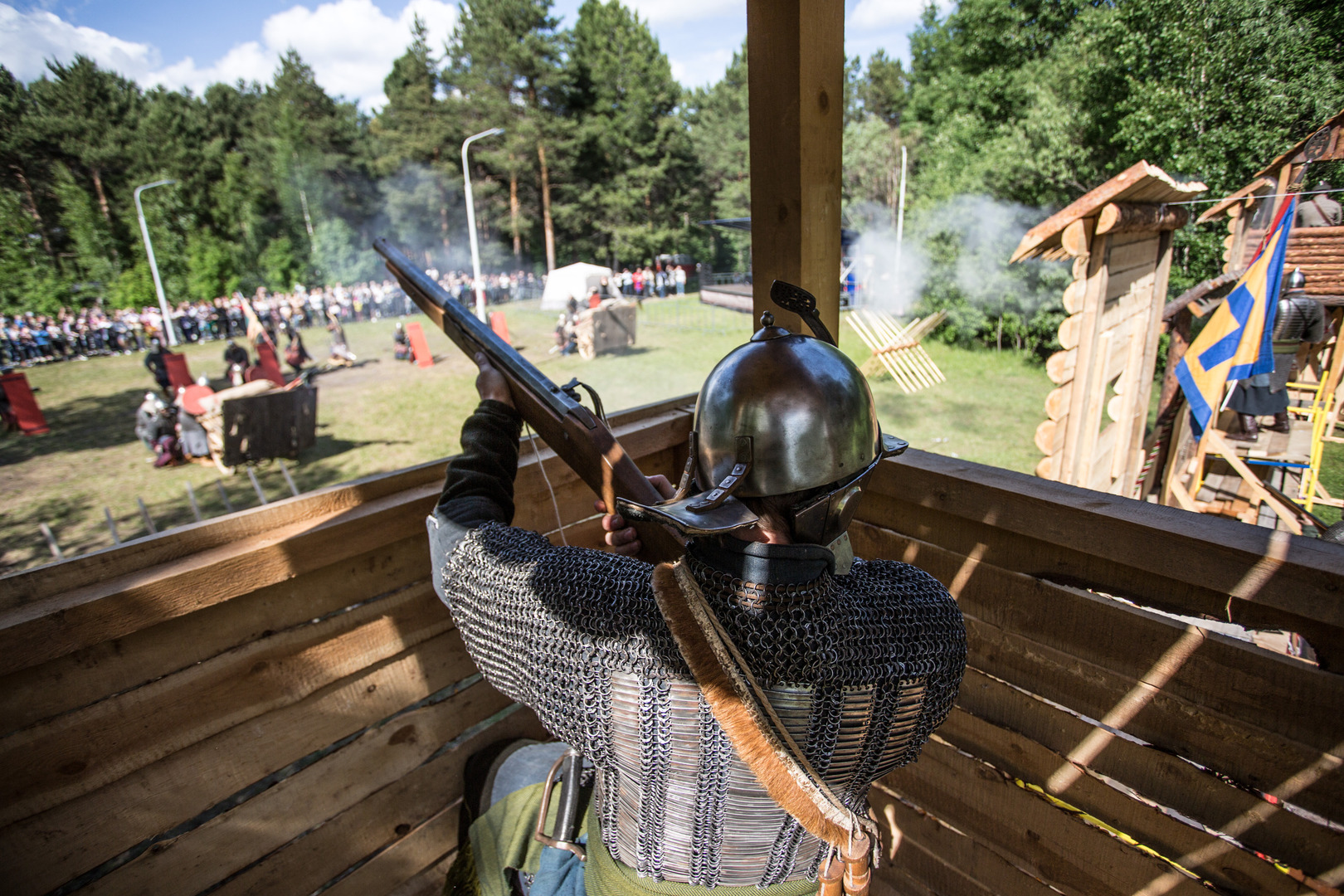 «Служилые люди» развернули на территории фестивальной площадки свой военный лагерь, к которому выстроилась огромная очередь из желающих примерить доспехи, поучиться стрельбе из лука и владению саблей (изготовленной из безопасного материала), сфотографироваться с воинами и пообщаться с ними. Там же расположился лагерь кочевников, с которыми приходилось когда-то воевать «служилым людям»: сцены баталий воссоздали на площадке фестиваля.