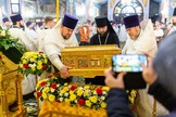 Ковчег привезли в Югру по благословению Святейшего Патриарха Московского и всея Руси Кирилла. До 15 часов 11 января он будет находиться в Сургуте, затем - в храмах Мегиона, Нижневартовска, Излучинска, пос. Солнечный Сургутского района, Нефтеюганска и Ханты-Мансийска. Соборы и церкви с принесённой святыней будут работать до последнего прихожанина, так что все желающие смогут вознести молитвы одному из самых почитаемых в христианстве святых. 17 января, накануне Крещения Господня мощи вернутся в северную столицу.
