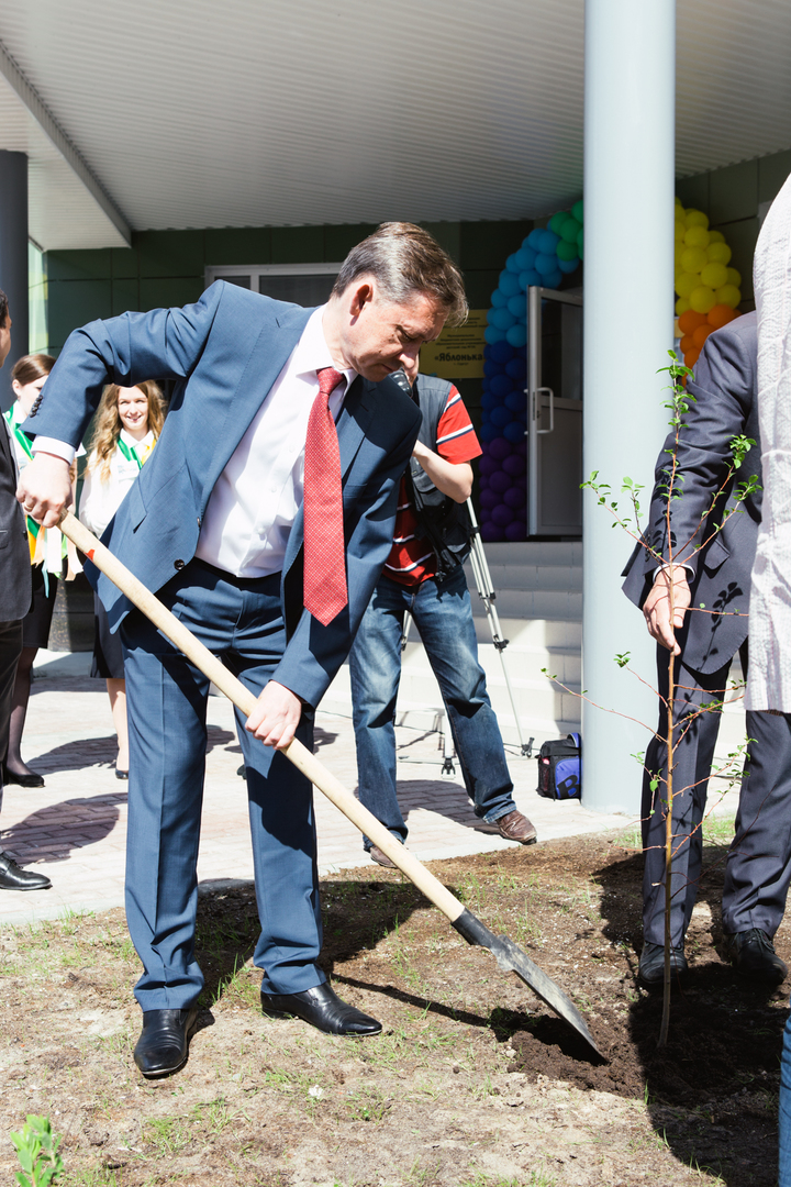 На открытии детского сада объявили о новой традиции – ежегодно праздновать яблочный спас. Первые саженцы яблонь во дворе высадили почетные гости.